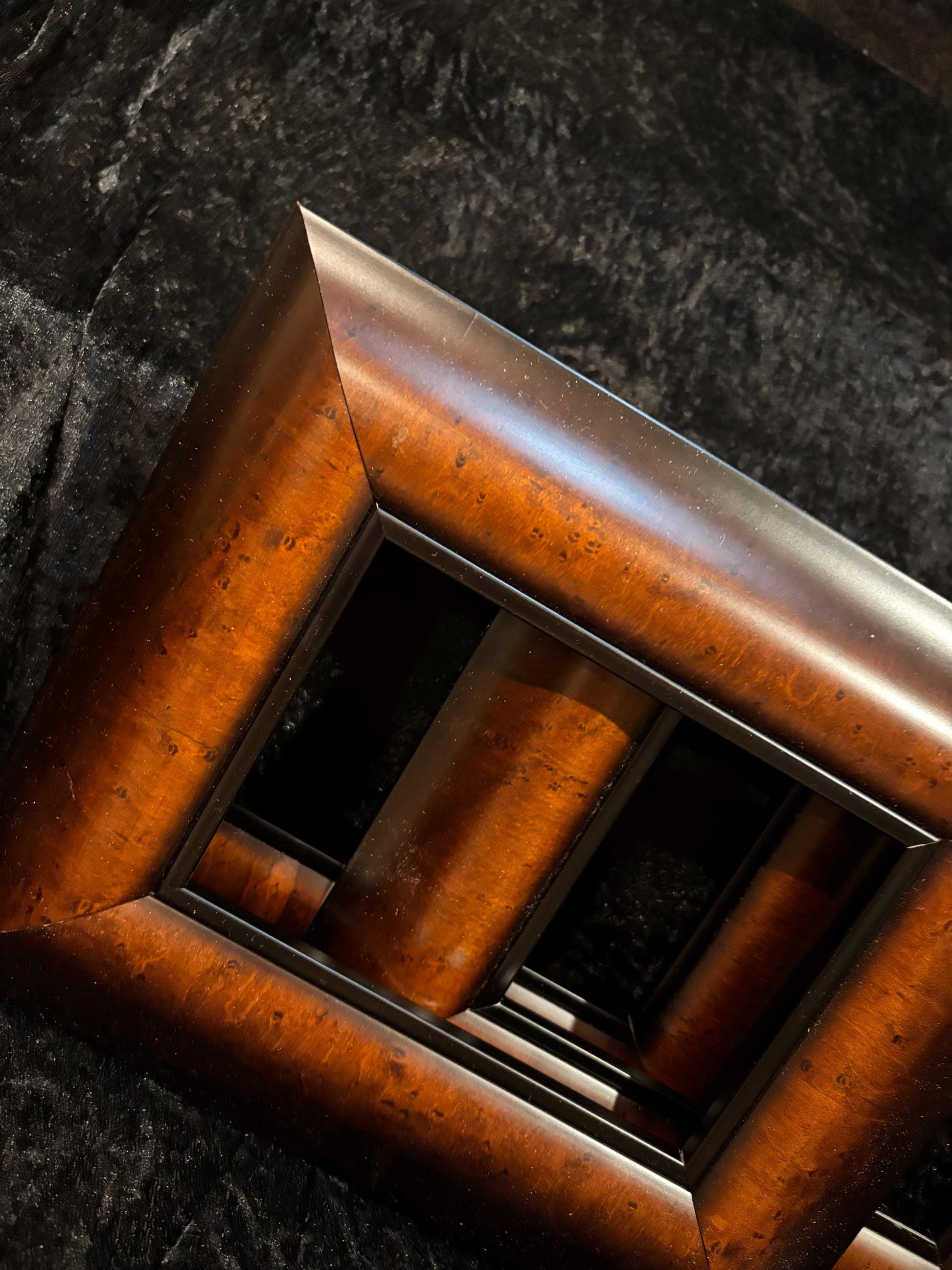 Frames made from vintage wood moulding, so there may be some minor scarring, but nothing to detract from the beauty of the frame. Most moulding is from the 1970's/ 80's.
